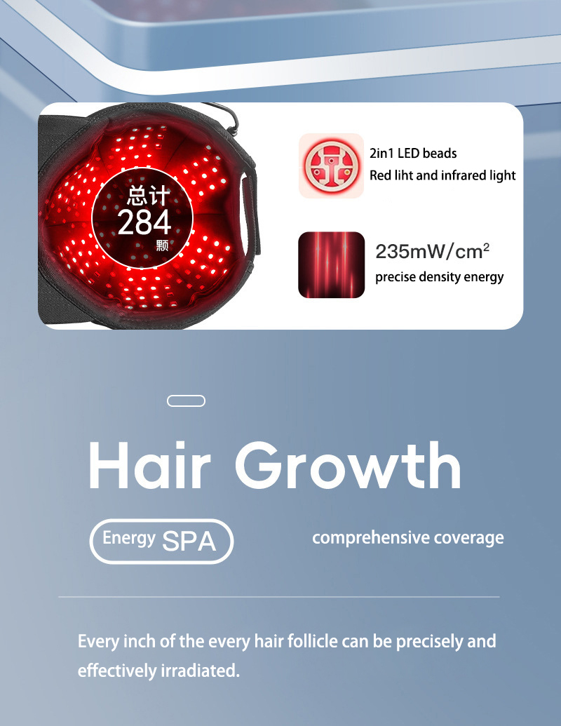 Nourishing scalp hair care device, red light hair growth cap, portable home LED therapy cap